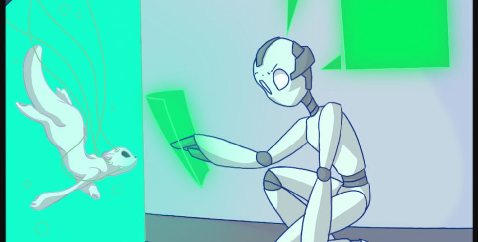 Project-ESC is a 2 1/2 minute film about two unlikely friends as they make their way out of a deep sea laboratory. The 2 protagonists; RA-98, a Robotic assistant, and Curiosity, a genetically modified Sea Otter, escape together after RA finds some devastating news.